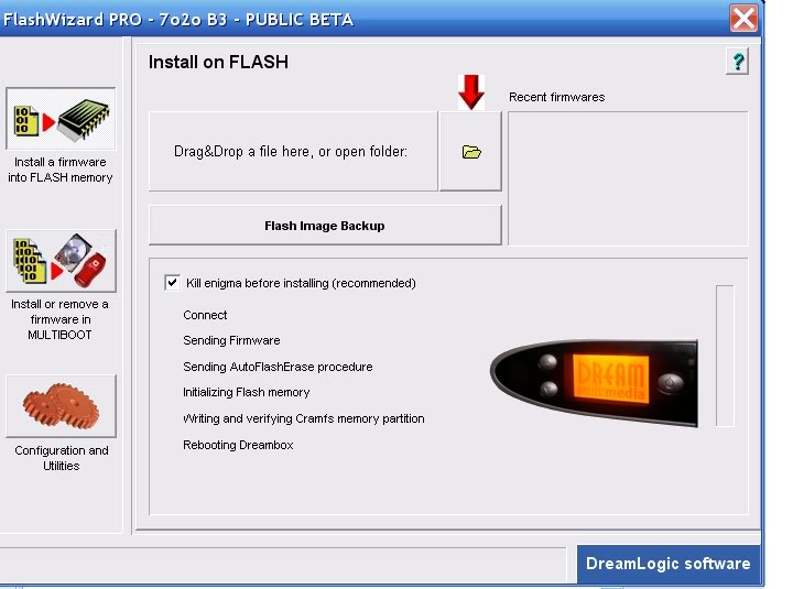 Avec flashwizard PRO 6RC1 il est aussi possible d’installer une image en flash.